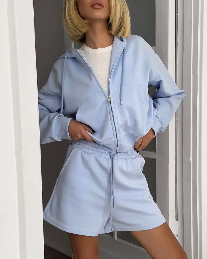 Спортивный костюм с шортами выполнен в свободном крое, что обеспечивает максимальный комфорт и свободу движений. Отлично подходит для повседневной носки, прогулок и отдыха.